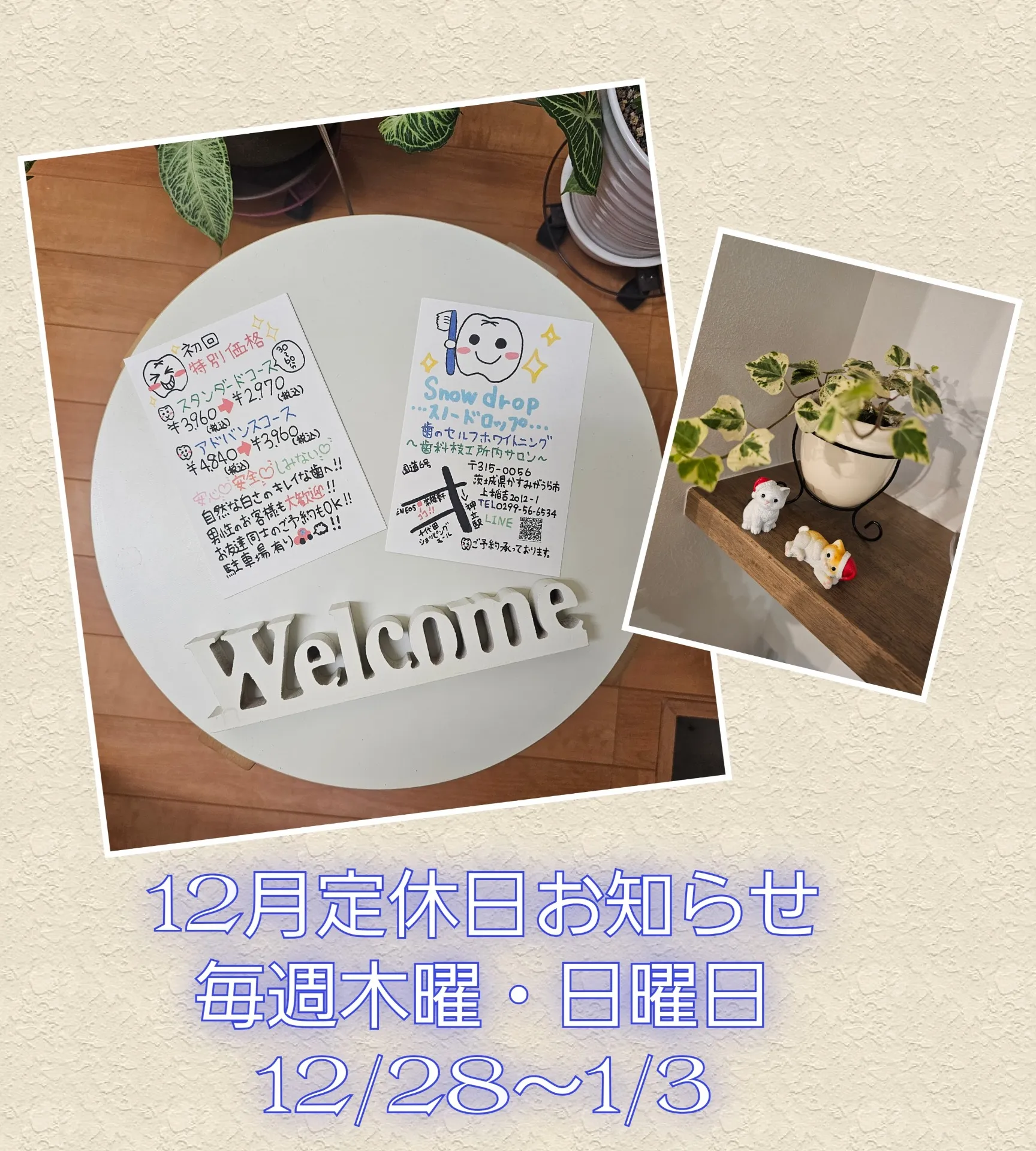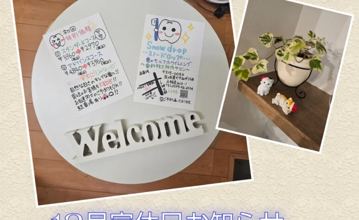 12月は年末年始休業もありますので、ご予定はお早めにです。クリスマス・忘年会・新年会などなど、いつも以上に忙しい月。